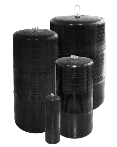 Одно днище оборудовано вентилем для заполнения оболочки сжатым воздухом, закрепленным скобой или серьгой.